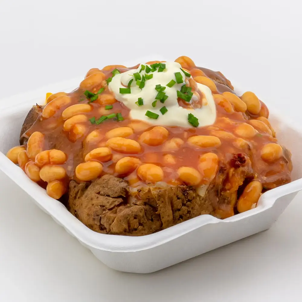 Jacket Potato with Cheese, Beef Chili Concarne, Sour Cream, Homemade Bacon Bits and Chives
